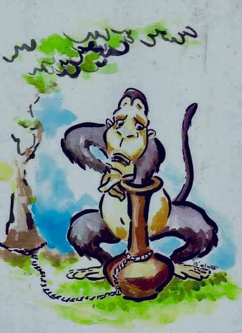 ਬਾਂਦਰਾਂ ਨੂੰ ਫੜ੍ਹਨ ਵਾਲਾ ਸ਼ਿਕਾਰੀ ਬਾਂਦਰਾਂ ਦੇ ਸੁਭਾਅ ਦਾ ਅਧਿਐਨ ਕਰਤਾ ਵੀ ਹੁੰਦਾ ਹੈ ਅਤੇ ਭਲੀ-ਭਾਂਤ ਜਾਣਦਾ ਹੈ ਕਿ ਇਹਨਾਂ ਦੀ ਕਮਜ਼ੋਰੀ ਲੋਭ ਹੈ। ਉਹ ਤੰਗ ਮੂੰਹ ਵਾਲੀ ਸੁਰਾਹੀ ਵਿੱਚ ਕੁੱਝ ਕੁ ਅਨਾਜ (ਛੋਲੇ ਜਾਂ ਮਕੱਈ ਦੇ ਭੁੱਜੇ ਦਾਣੇ) ਪਾ ਦਿੰਦਾ ਹੈ ਅਤੇ ਅੱਧੇ ਕੁ ਬਾਹਰ ਖਿਲਾਰ ਦਿੰਦਾ ਹੈ। ਬਾਂਦਰ ਕੋਲ ਆ ਕੇ ਪਹਿਲਾਂ ਤਾਂ ਬਾਹਰ ਪਏ ਦਾਣੇ ਖਾਂਦਾਂ ਹੈ ਅਤੇ ਫਿਰ ਹੋਰ ਕੱਢਣ ਲਈ ਸੁਰਾਹੀ ਵਿੱਚ ਹੱਥ ਪਾਉਂਦਾ ਹੈ… ਦਾਣੇ ਹੱਥ ਵਿੱਚ ਆ ਜਾਂਦੇ ਹਨ, ਮੁੱਠੀ ਭਰ ਲੈਂਦਾ ਹੈ ਪਰ ਭਰੀ ਮੁੱਠੀ ਸੁਰਾਹੀ ਵਿੱਚੋਂ ਬਾਹਰ ਨਹੀਂ ਨਿਕਲਦੀ…ਦਾਣੇ ਛੱਡਣ ਨੂੰ ਦਿਲ ਨਹੀਂ ਕਰਦਾ ਤੇ ਬੰਦ ਮੁੱਠੀ ਸੁਰਾਹੀ ਵਿੱਚੋਂ ਨਹੀਂ ਨਿਕਲਦੀ… ਤੇ ਬੱਸ ਏਨੇ ਨੂੰ ਆ ਕੇ ਸ਼ਿਕਾਰੀ ਗੱਲ ਰੱਸੀ ਪਾ ਦਿੰਦਾ ਹੈ। ਹੁਣ ਘਰ ਘਰ ਦੇ ਬਾਹਰ ਤਮਾਸ਼ਾ ਵਿਖਾਉਣ ਲਈ ਨੱਚਦਾ ਵੀ ਹੈ ਅਤੇ ਸੋਚਦਾ ਵੀ ਹੋਵੇਗਾ ਕਿ ਜੇ ਥੋੜੀ ਖਾ ਕੇ ਗੁਜ਼ਾਰਾ ਕੀਤਾ ਹੁੰਦਾ ਤਾਂ.. ਲੋਭ ਨਾ ਕੀਤਾ ਹੁੰਦਾ ਤਾਂ… ਸ਼ਾਇਦ ਅੱਜ ਗੁਲਾਮ ਨਾ ਹੁੰਦਾ। ਗੁਰਬਾਣੀ ਦਾ ਪਾਵਨ ਫੁਰਮਾਨ ਹੈ,